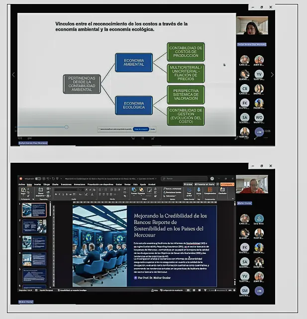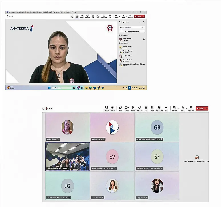 Recurso académico que usa la mediación tecnológica compartida entre profesores y estudiantes de universidad aliada, para participar en el desarrollo sincrónico y/o asincrónico de sesiones académicas. Estas sesiones se realizan en doble vía lo que permite un intercambio de conocimiento áulico, entre docentes y estudiantes.